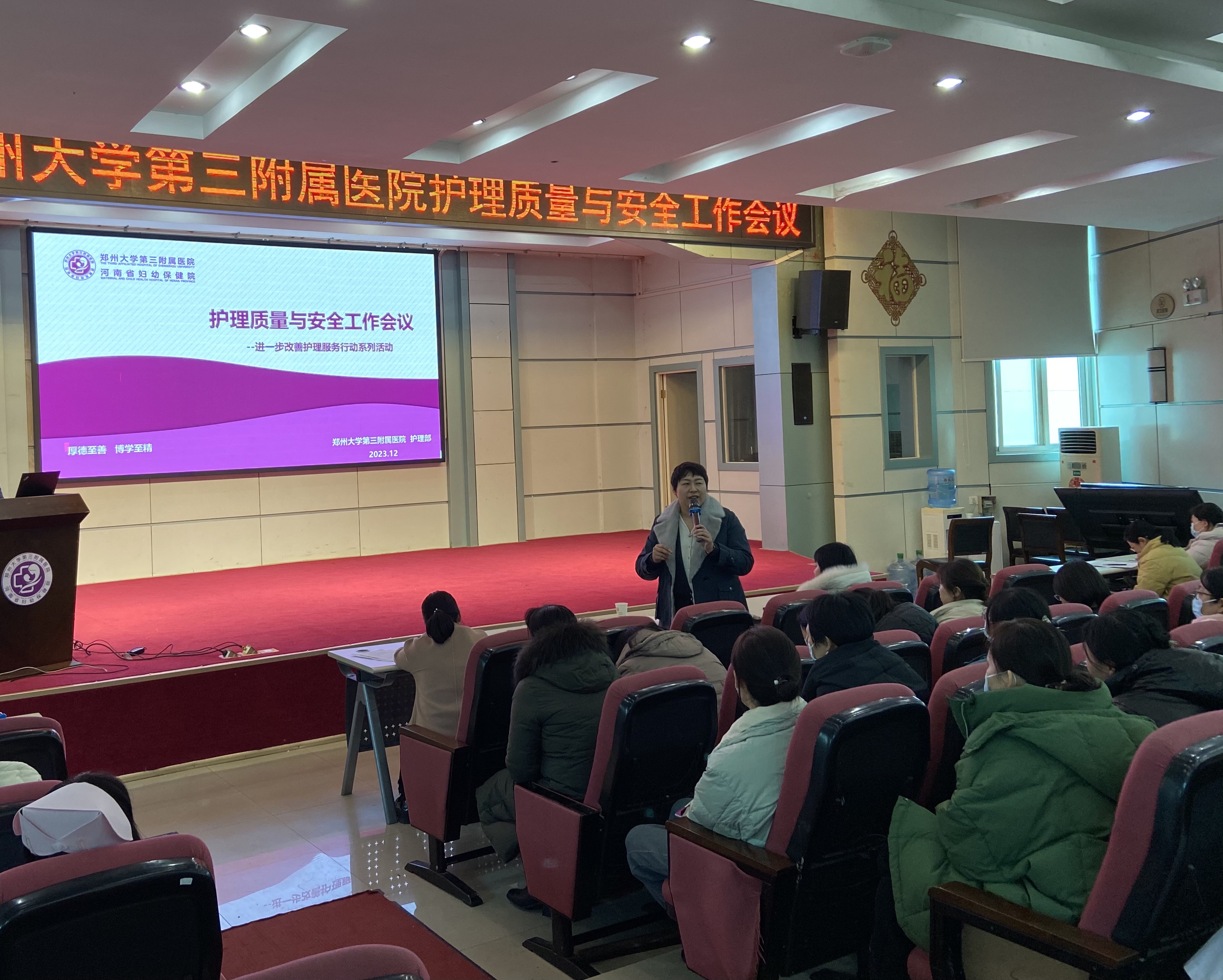 为全面贯彻落实党的二十大精神,聚焦人民群众日益增长的多样化护理服务需求,持续提升护理质量与安全管理科学化、精细化水平,夯实高质量发展根基,依据河南省卫生健康委《河南省进一步改善护理服务行动计划实施方案 (2023-2025 年)》《河南省全面提升医疗质量行动实施方案(2023-2025 年)》等文件要求,郑州大学第三附属医院护理部结合工作实际,开展了一系列临床护理质量提升行动。