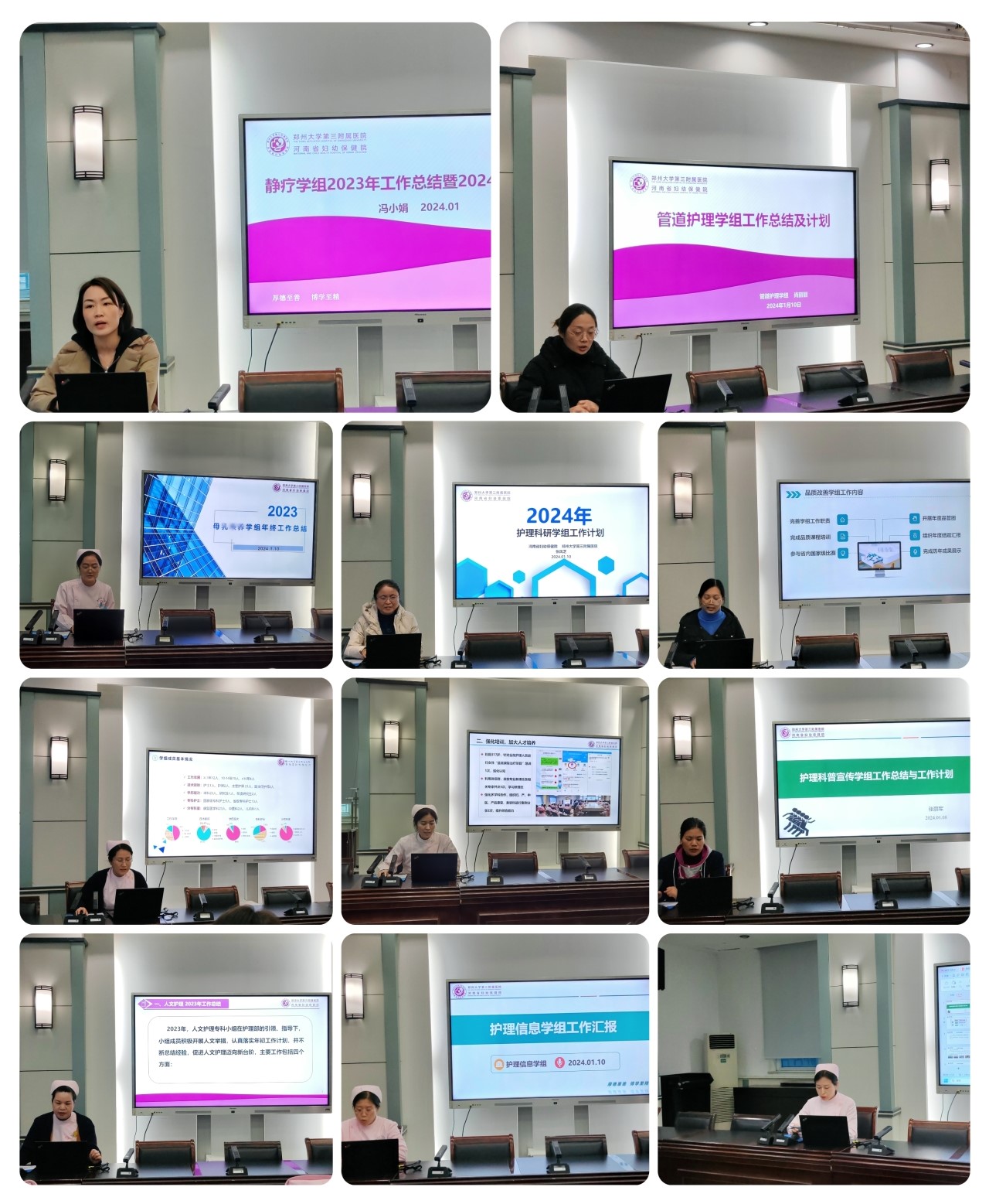 会上,盆底康复学组石云、母乳喂养学组杨晓宇、儿童康复学组芦静、人文护理学组余丰侠、静脉治疗学组冯小娟、护理科研学组张凤芝、品质改善学组彭宇阁、管路护理学组尚丽丽、中医护理学组卢甜甜、护理科普学组张丽军、护理信息学组李魏,11位学组组长分别围绕组织架构、人才培养、专科门诊建设、科研创新等方面汇报了2023年学组工作开展情况,分享一年来取得的成绩,同时分析现存问题和发展困惑,谋划新一年的工作目标与思路。