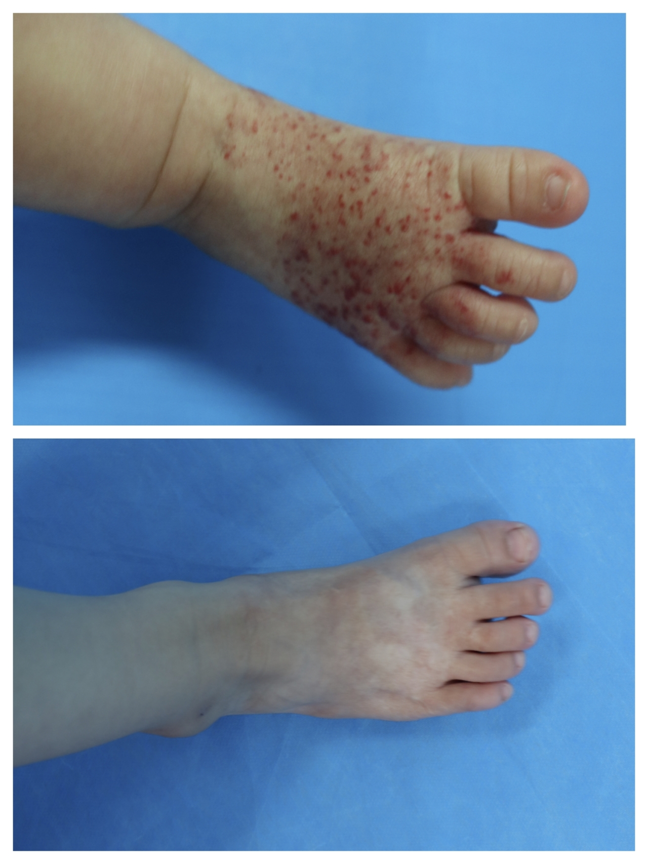 毛细血管瘤硬化剂注射治疗前后对比(一)