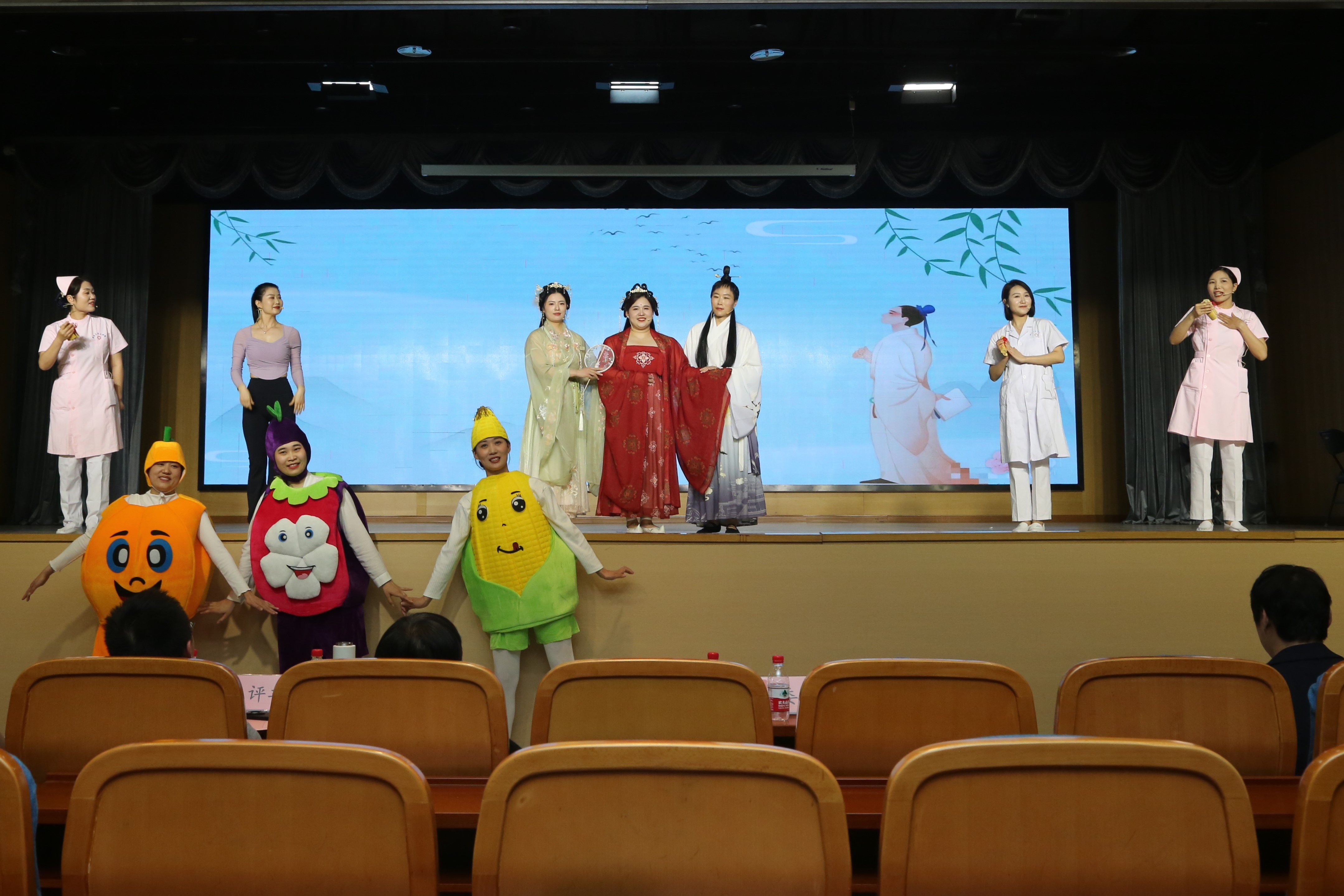 郑大三附院党委副书记、执行院长赵鑫、副院长郭晓丽出席比赛现场。原感染预防控制部主任白桦、离退休职工服务部、临床营养科主任冯彩英,手术麻醉科党总支书记王立新、护理部主任王锟,团委书记、第三临床医学院机关党总支书记、综合办公室主任史艳香,后勤保障部党总支书记王宇、健康教育中心主任鲁美苏、纪委综合办公室主任梁肖、党委宣传统战部理论科科长何剑硕担任评委。医院全体总护士长、护士长、护理科普宣传学组成员及部分护理人员齐聚一堂,共襄盛会。