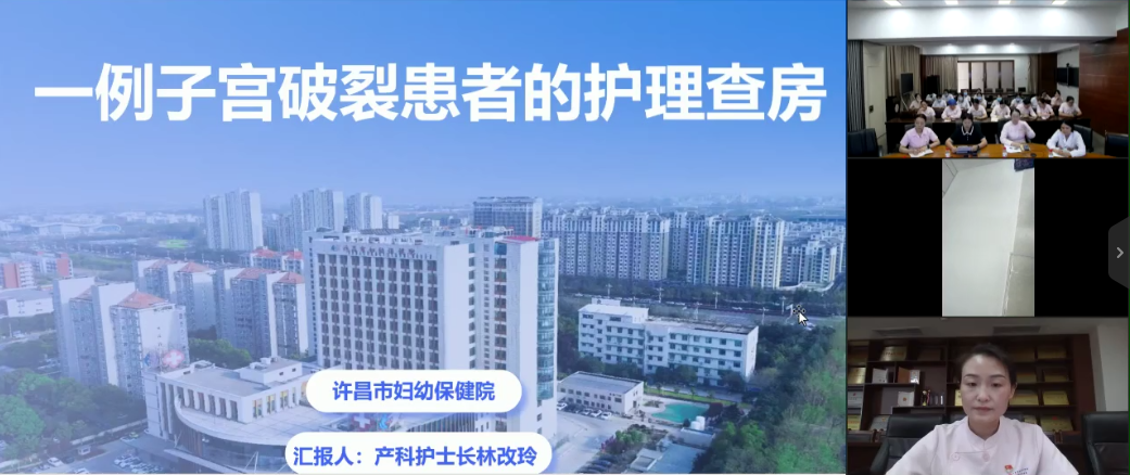 为深入贯彻落实河南省“进一步改善护理服务行动计划”,推动优质护理资源下沉,提升基层妇幼保健机构护理服务能力。近日,郑州大学第三附属医院(河南省妇幼保健院)联合许昌市妇幼保健院,开展“云上妇幼”远程直播护理培训系列课程。本期课程围绕“一例子宫破裂患者的护理查房”展开讨论。