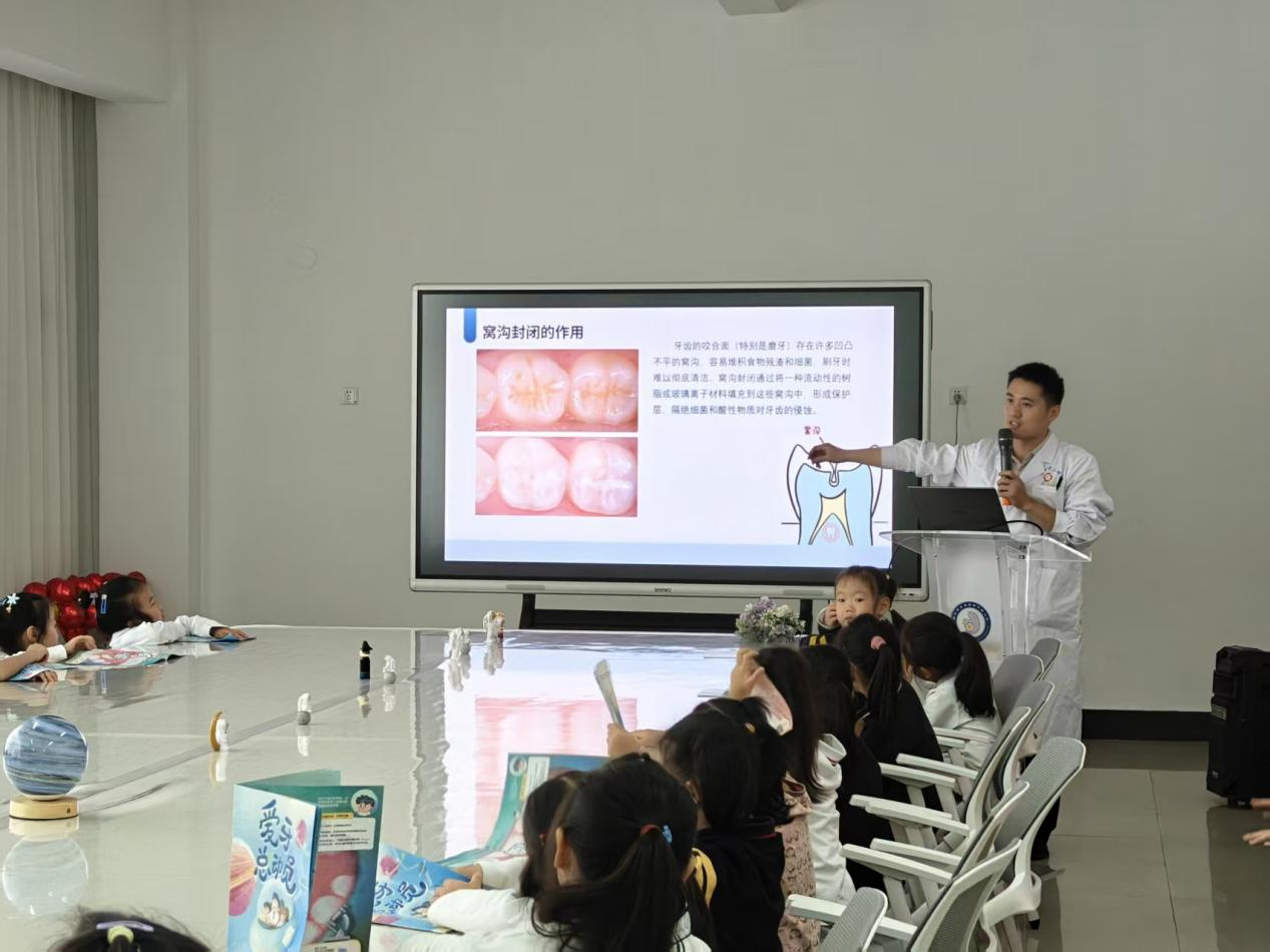 本次活动以“牙齿保卫战”为主题,围绕“认识牙齿”“正确刷牙”“涂氟防蛀”“窝沟封闭”及“口腔不良习惯纠正”五大板块展开。通过图文并茂的PPT讲解、实物模型演示、互动问答、刷牙实操指导等多种形式,让孩子们在轻松愉快的氛围中学习口腔保健知识。