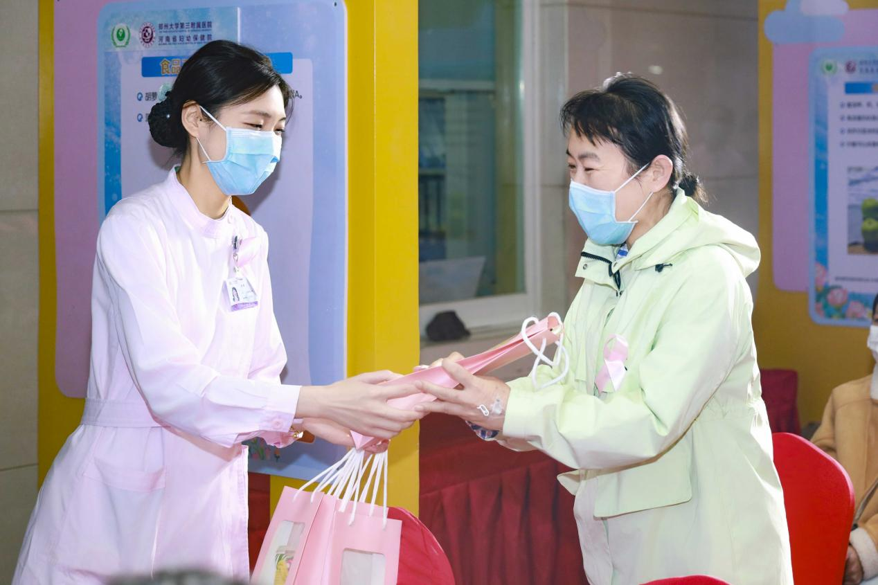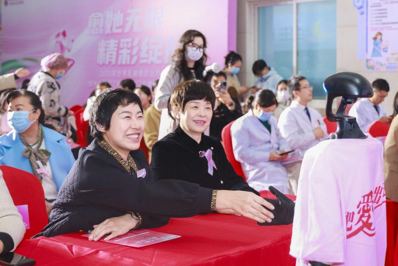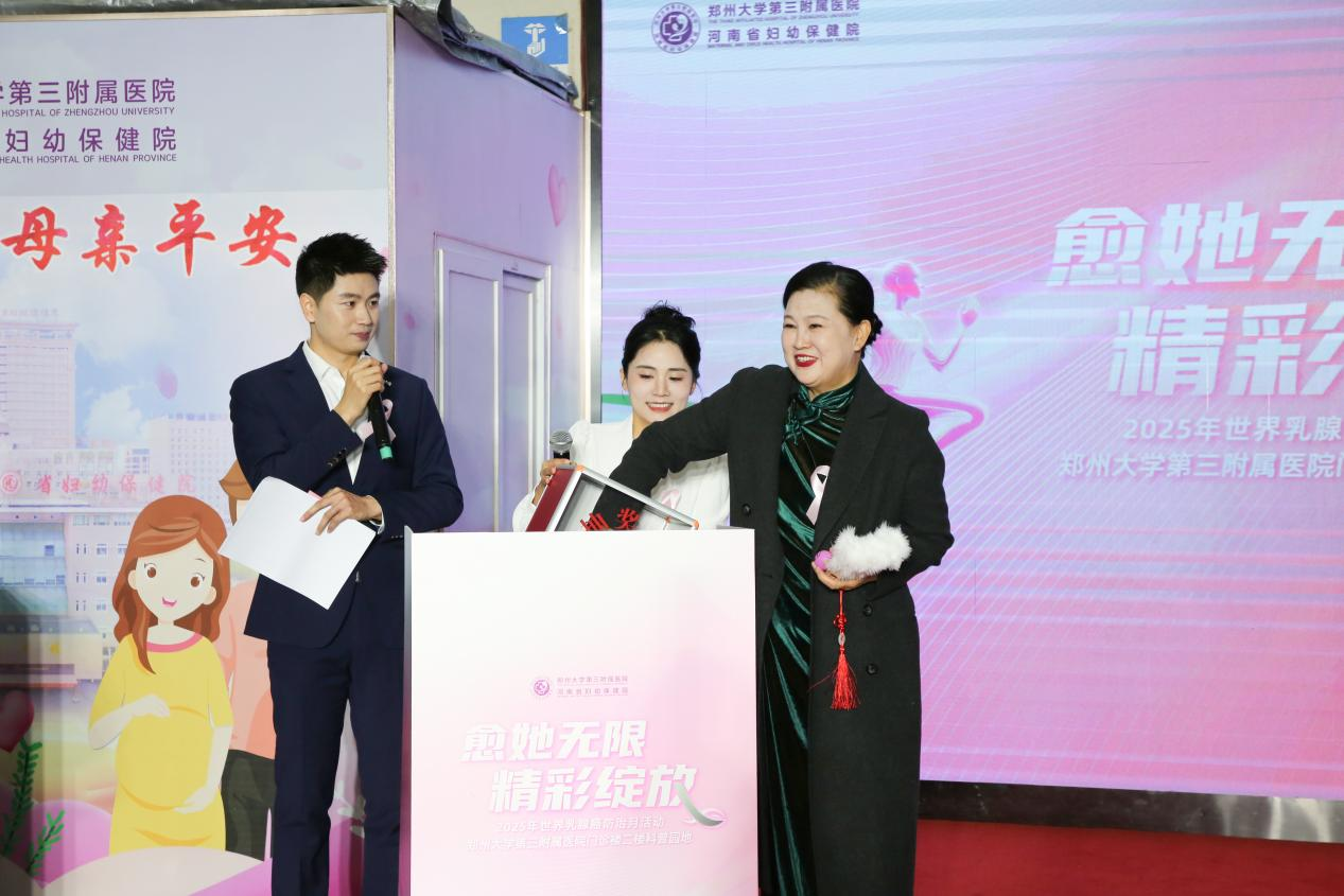 对抗乳腺癌,不仅是技术的革新,更是信念的远征。10月10日,本院乳腺甲状腺外科在门诊二楼科普园地成功举办了“愈她无限,精彩绽放”主题科普公益活动。参加此次活动的有郑州大学第三附属医院副院长郭晓丽、宣传统战部部长华小亚、护理部主任王锟、健康教育科主任鲁美苏、医务部副主任王芳、外科党总支书记冯小娟以及乳腺甲状腺外科和中医科医护人员。现场通过科普讲座、旗袍秀、康复经验分享、乳房健康操、趣味问答、机器人互动、专家义诊等多元形式,吸引了近百名患者及群众积极参与。我们用一个盛大的“粉红丝带”关爱活动,将这份坚定的信念化为响亮的行动宣言。