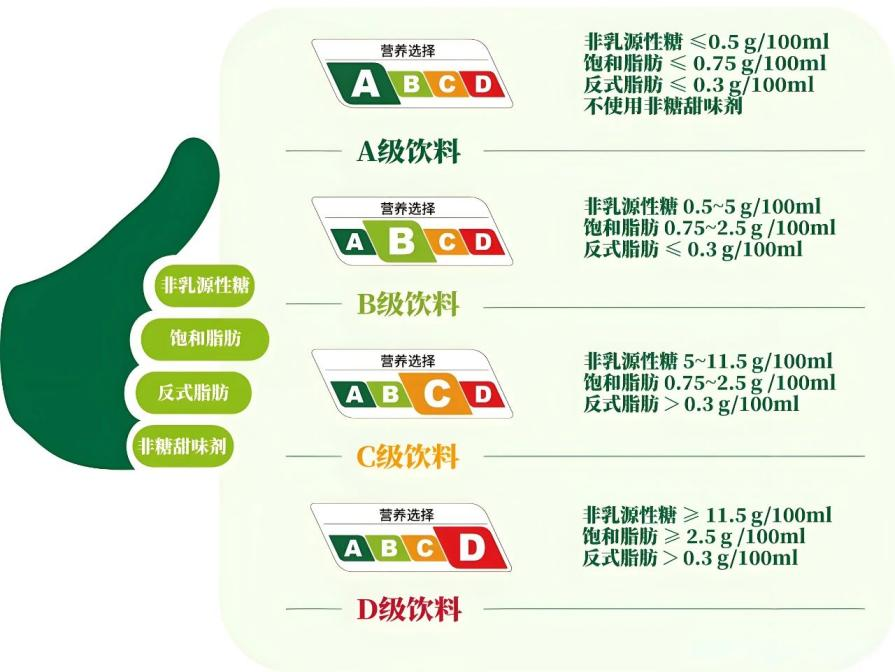 今年国内首次推出饮料“营养选择”分级标识,评定等级从高至低,标识ABCD四级,推荐程度逐步递减。