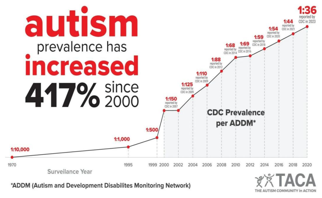 1.2023年3月24日美国CDC最新数据:8岁美国儿童中,患病率1/36(2.76%)。