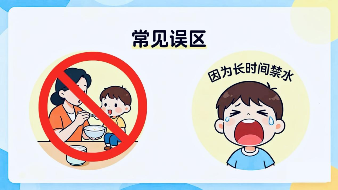 2. 误区二:“禁水就是一滴水都不能喝,提前8小时就不喂了”