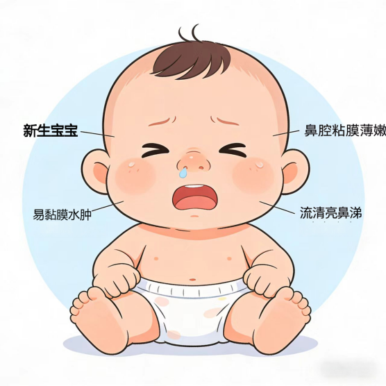 新生宝宝鼻腔黏膜薄嫩,血管丰富,出生后2-3周内容易出现黏膜水肿。这属于正常现象,宝宝打喷嚏时带出的清亮鼻涕就是身体在自我清洁。