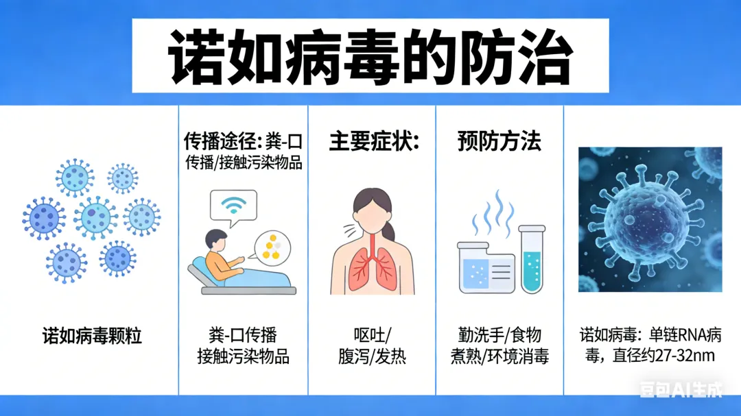 2.传播途径多样:主要通过“粪 - 口”途径传播,不过接触被污染的环境、物品,或者摄入被污染的食物和水都有可能感染。处理呕吐物时产生的气溶胶也可能导致病毒传播。