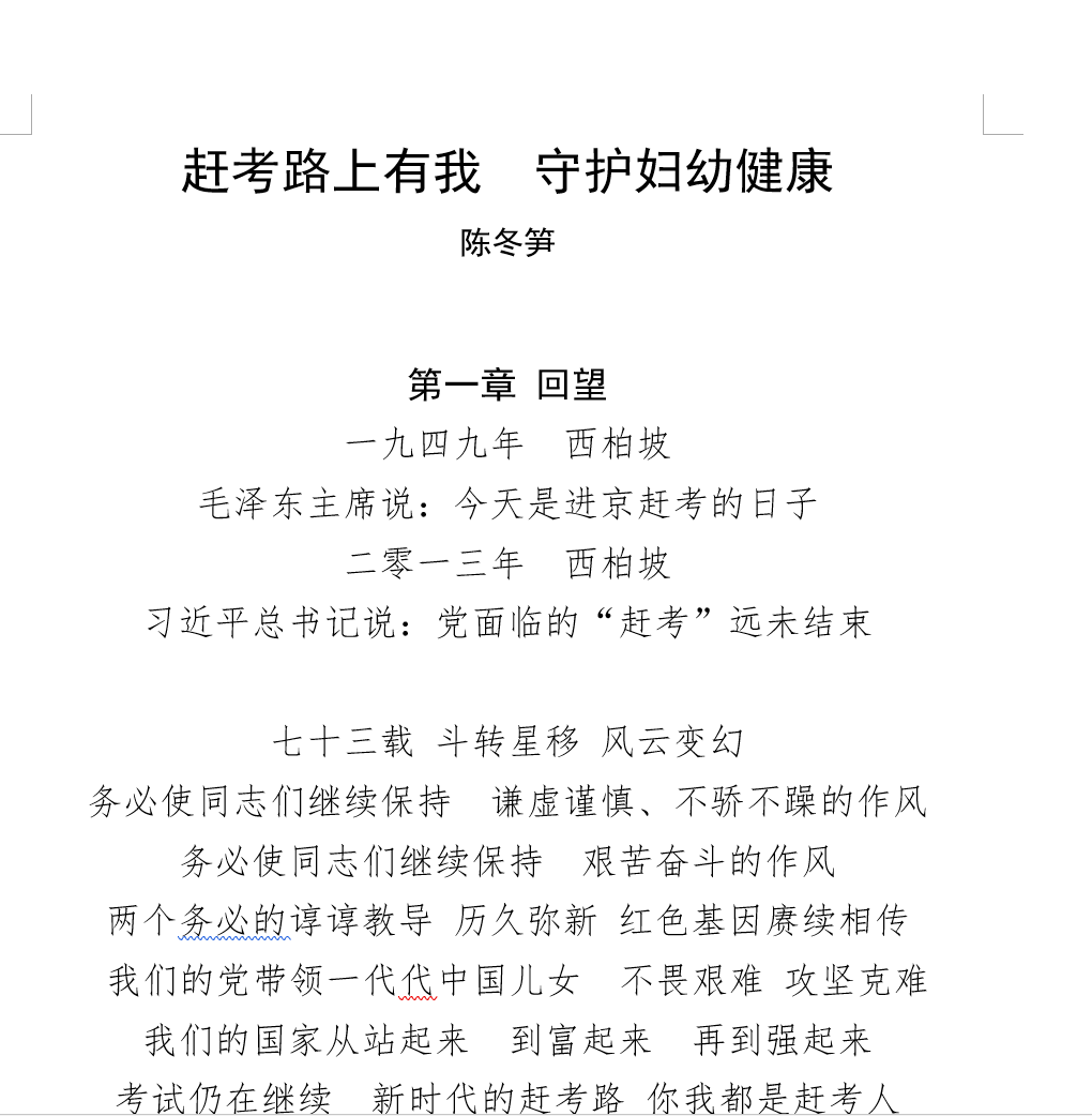赶考,是一代代中国共产党人的永恒接力。通过开展“赶考路上有我”系列主题活动,进一步丰富了全体党员干部职工的精神文化生活,激发了为党旗添彩、为祖国争光、为时代建功的豪情斗志和火热激情。下一步,医院将进一步激励广大干部职工在赶考路上书写优异答卷,让精神之火熊熊燃烧,让奋斗之志生生不息,谱写一流妇幼保健院建设新篇章,用实际行动迎接党的二十大胜利召开。