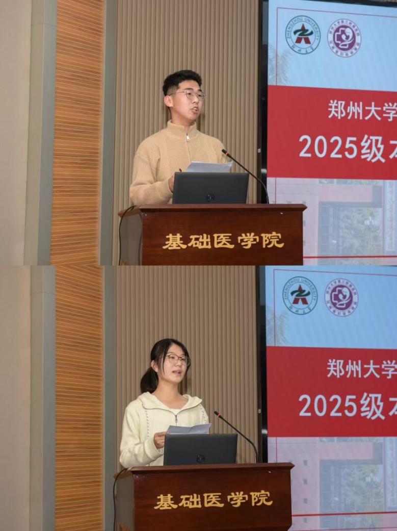 新生代表樊书政、姚灿灿先后表态:感恩学院“学业导师制”的暖心护航,承诺以“勤”夯基、以“谦”求教、以“德”铸魂,用“空杯、赤子、实干”之心紧随导师,早日成长为值得托付的“健康守门人”。