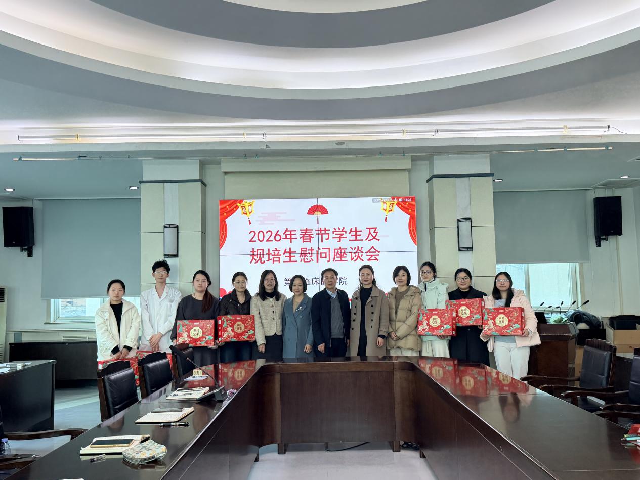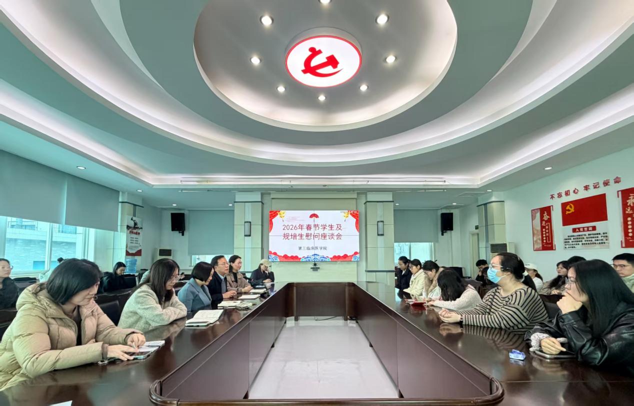 万家灯火辞旧岁,医者仁心守新春。第三临床医学院于2026年2月12日正式启动春节慰问系列活动。活动以“心系学子·情暖新春”为主题,由第三临床医学院执行院长李志业、党委副书记郭艳、副院长单岩带队,深入宿舍、实验室、教学楼、科研楼开展走访。通过“线下走访+线上关怀”双模式,确保慰问全覆盖,为学院医学生、规培生送上新春祝福与暖心关怀。