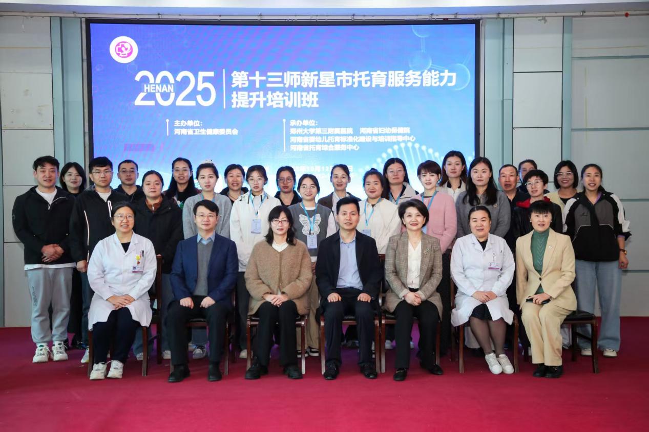 为贯彻落实国家“十四五”对口支援新疆工作计划,加强豫疆两地卫生健康领域交流合作,切实加强托育服务人才队伍建设,进一步提升托育机构管理水平和服务能力,保障婴幼儿健康成长,助力婴幼儿照护服务高质量发展,2025年10月12日至18日,在郑州大学第三附属医院(河南省妇幼保健院)顺利举办2025年第十三师新星市托育服务能力提升培训班,此次培训班由河南省卫生健康委主办,郑州大学第三附属医院、河南省婴幼儿托育标准化建设与培训指导中心、河南省托育综合服务中心承办。河南省卫生健康委人口家庭处副处长、三级调研员孙崇高、第十三师新星市卫生健康委计生中心主任马海蓉、郑州大学第三附属医院副院长禹东川、河南省委机关幼儿园园长张继红、儿童保健科主任段桂琴、托育服务中心主任吴金凤、儿童发育行为科副主任靳彦琴等出席开班仪式。