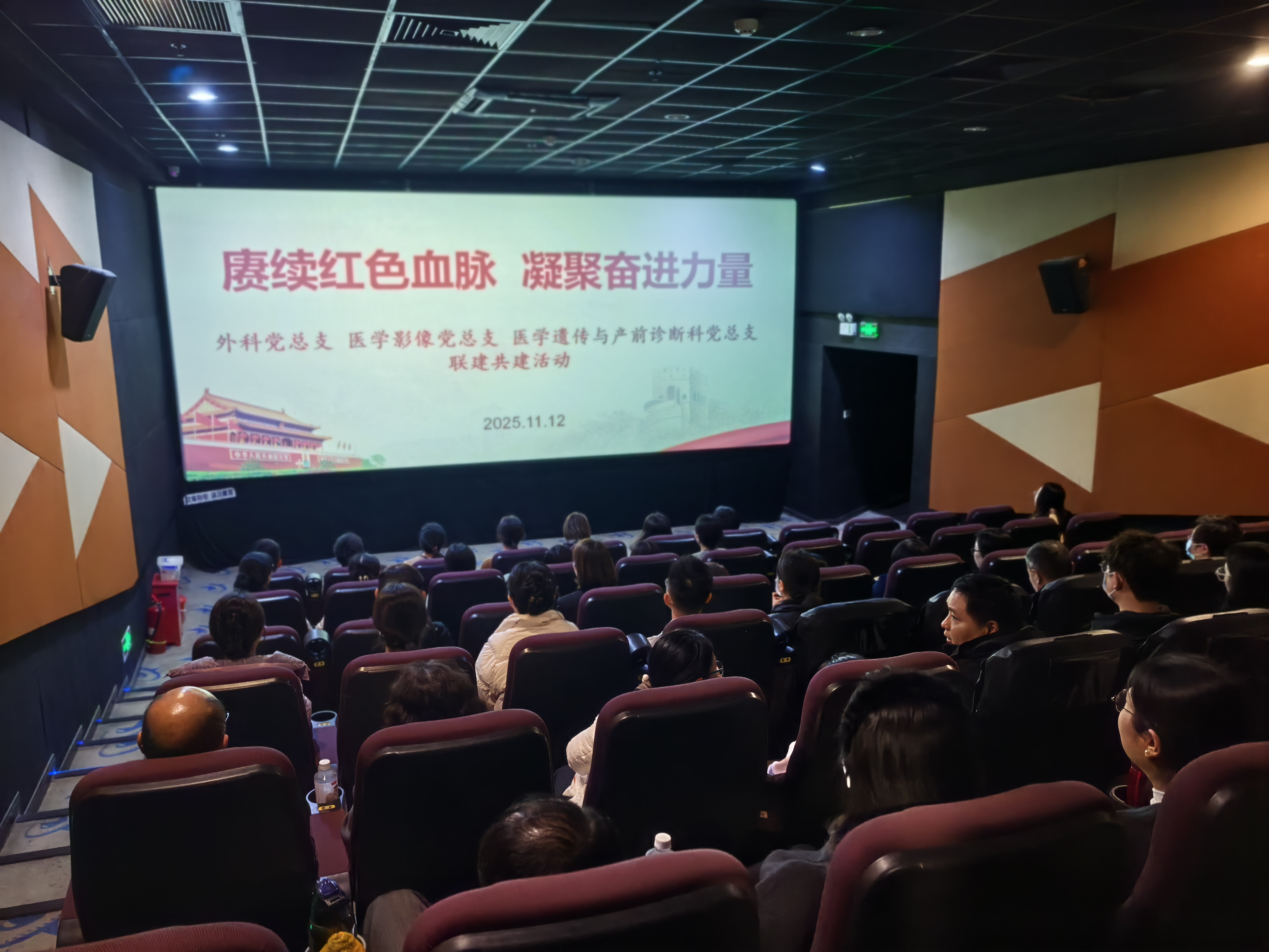 为深入学习贯彻习近平新时代中国特色社会主义思想,全面落实《新时代爱国主义教育实施纲要》,进一步弘扬伟大抗美援朝精神,强化党总支之间协同共建,2025年11月12日晚,郑州大学第三附属医院(河南省妇幼保健院)外科党总支、医学影像党总支、产前诊断党总支联合开展“赓续红色血脉 凝聚奋进力量”主题党日活动,组织集体观看爱国主义题材影片《志愿军》。副院长薛影出席活动,副处级组织员、产前诊断党总支书记刘灵、外科党总支书记冯小娟、医学影像党总支书记程美英、三个党总支委员、党员代表及入党积极分子共75人参与,活动由医学影像党总支书记程美英主持。