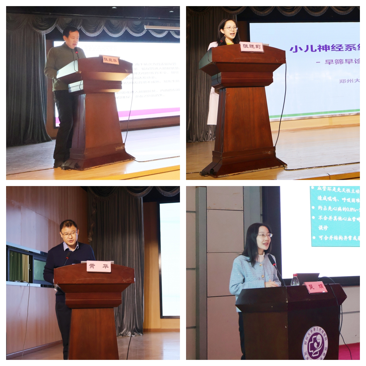 群贤齐聚话防治,全景赋能促提升。赵鑫教授以《MR在胎儿神经系统疾病诊断新进展》为题,聚焦复杂颅脑与胸腹部畸形,阐释MRI对超声诊断的赋能作用。刘灵教授在《胎儿神经系统的产前诊断与遗传咨询》分享中,着重强调“影像+基因”双轨诊断模式的重要性。张琳琳教授以《常见遗传学检测技术及适应症》为主题,巧妙将基因编码比作“生命之书”,用生动鲜活的比喻读懂生命密码背后的诊疗逻辑。黄华教授讲授《新生儿常见出生结构畸形的产前诊断及生后外科治疗》,从超声影像评估切入,全景呈现多学科协作下的诊疗管理策略。张立华教授聚焦《小儿泌尿外科常见疾病的诊疗》,系统梳理肾积水、多囊肾等疾病的超声评估要点与预后判断方法,反复强调多学科协作诊疗路径的实践意义,内容贴合临床实操,落地性极强。张晓莉教授在《小儿神经系统疾病的产前认识及预后》中,搭建起从产前精准诊断到产后科学干预的临床桥梁,为患儿远期健康管理提供路径。栗河舟教授主讲《胎儿胼胝体发育不全合并颅脑畸形的超声特征》,携典型临床案例一步步抽丝剥茧,助力学员提升颅脑复杂畸形的识别与研判能力。吴娟教授围绕《先天性血管环的产前超声评估要点和技巧》,从基础切面操作到复杂先心病精准诊断,解析超声技术在衔接产后治疗中的重要桥梁作用。超声医学科中青年讲师团分别聚焦胎儿心脏畸形、胎儿颅脑异常、女性生育力、胎儿腹部静脉系统、乳腺超声诊断缺陷病例及子宫内膜异位等妇幼健康的系列临床重点专题,将多年积累的诊断经验与临床思路尽数传递,现场互动频繁热烈。