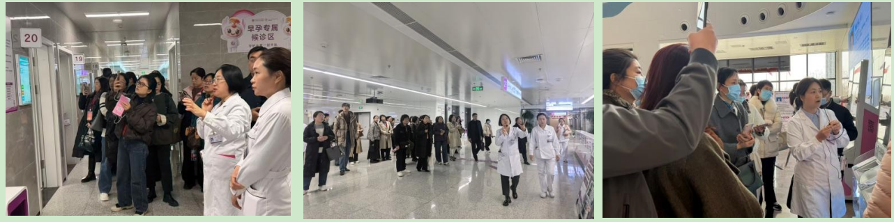 理论授课结束后,我院产科综合二病区罗晓华主任、东院区产科门诊护士长蔡蔚思带队,陪同全省十八地市参训人员实地参观我院产科早孕关爱门诊。参观过程中,罗晓华主任结合门诊布局、功能分区、服务流程等方面,详细讲解了我院在早孕咨询、风险筛查、健康指导、信息管理等方面的具体做法;蔡蔚思护士长则结合早孕门诊区域布局、特色项目、如何“挂号→评估→检查→解读→建档或转诊”全流程无缝衔接,用“3 分钟步行圈、五步一站式”模式等,为各地门诊建设提供宝贵的参考样板。