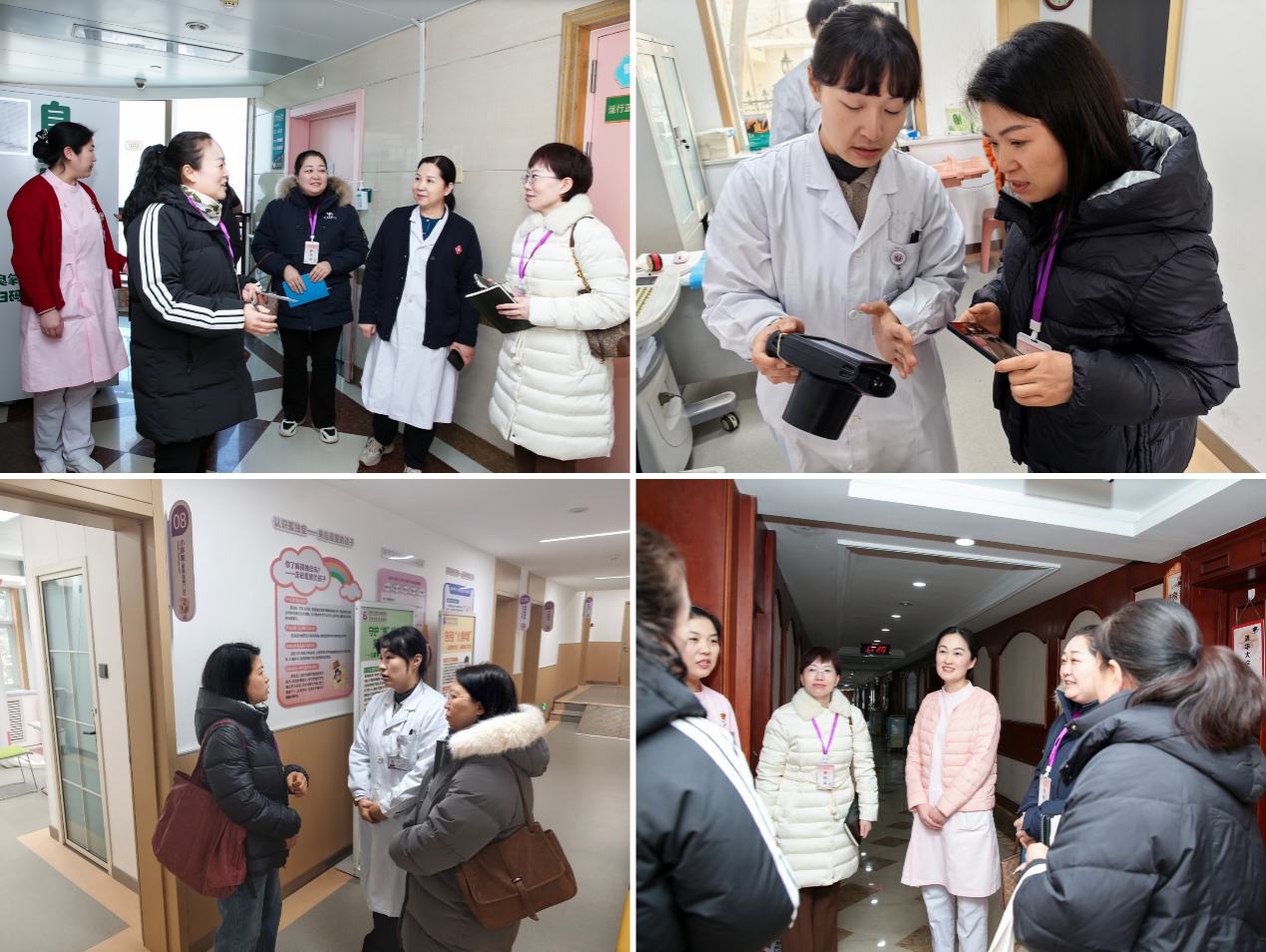 与此同时,兰考县妇幼保健院随行的各科室负责人分线开展实地参观:新生儿科主任王志红来到新生儿科,详细了解危重患儿救治流程与学科建设模式;儿童保健部部长、儿科主任赵月玲深入儿童保健部、妇孺国医堂,实地考察了“五小”专项和中医各项特色服务;孕产保健部部长黄杏芝、妇女保健部部长刘玉静走进产科,重点交流产科先进技术及规范化管理、中医融妇幼的具体路径,实地考察了产科孕前、孕中及产后的特色服务;财务科科长孙娟娟前往财务科,探讨精细化财务管理体系搭建。参观过程中,双方围绕科室运作机制、技术创新应用等内容展开一对一深度交流,干货满满、成效显著。