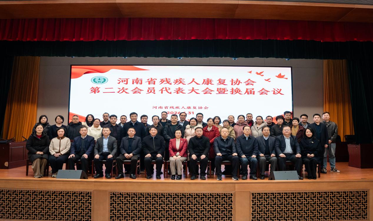 2026年1月31日,河南省残疾人康复协会第二次会员代表大会暨换届会议在郑州召开。本次大会是协会承前启后、继往开来的重要会议,标志着协会发展步入新阶段。中国残疾人康复协会理事、副秘书长侯平、河南省残疾人联合会党组成员、副理事长杨洪涛、河南省残疾人联合会康复部部长赵金岗、河南省残疾人联合会理事、一级调研员林济策、河南省残疾人联合会组联部二级调研员韩霞、河南省残疾人康复协会第一届理事会副会长、郑州大学第三附属医院原副院长王军应邀出席,与全体会员代表共商我省残疾人康复事业发展大计。会议由赵金岗主持。