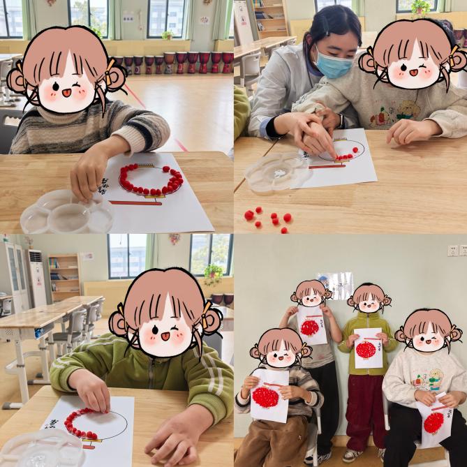 本次活动围绕“红灯笼”“梅花福”“冰糖葫芦”三大春节符号,设计了兼具康复价值与文化意义的手工创作。
