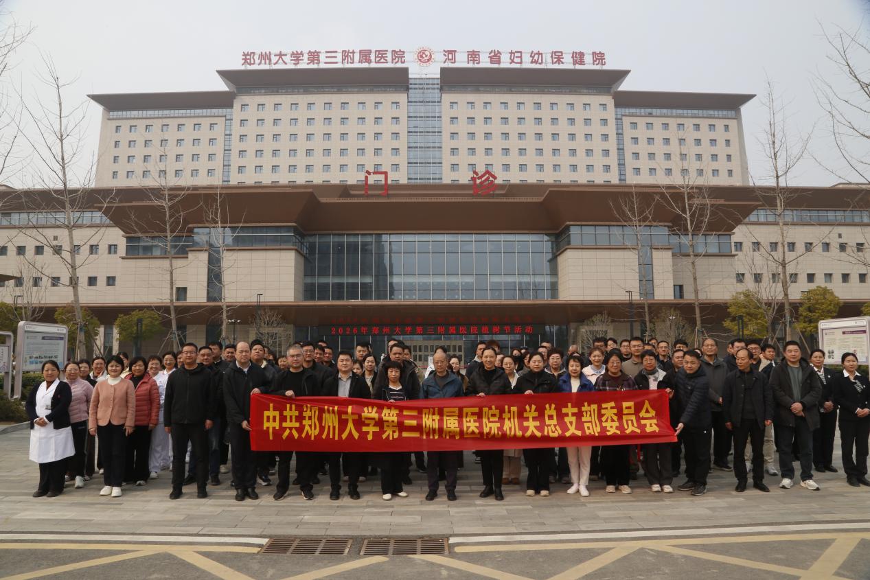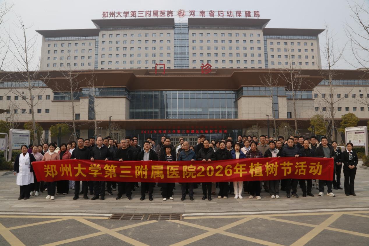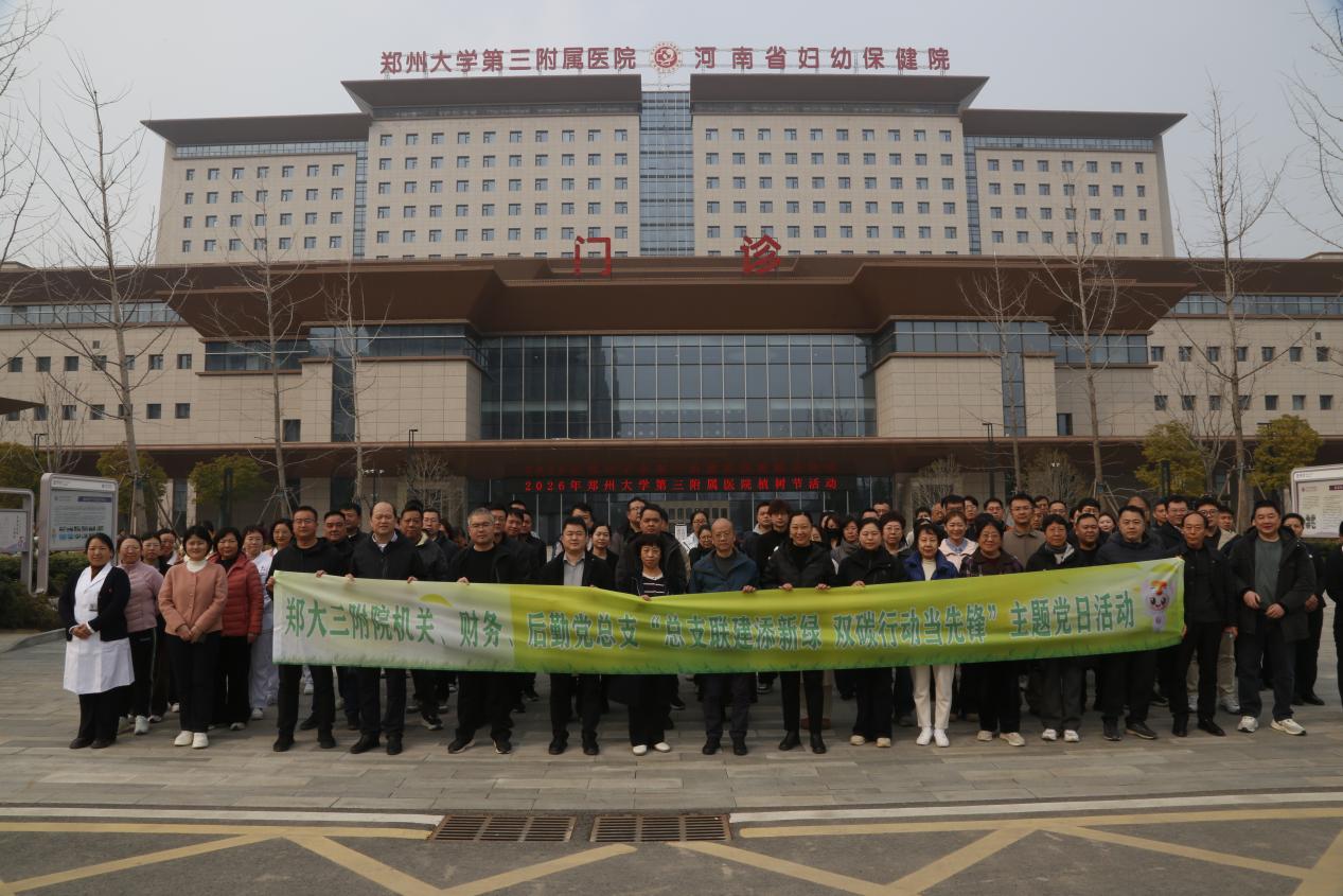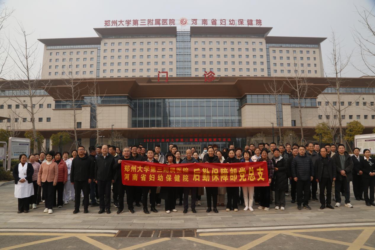 2026年3月12日下午,在第48个植树节来临之际,机关、财务、后勤党总支在郑州大学第三附属医院(河南省妇幼保健院)东院区联合举办“根植沃土四十载 同心共建向未来”主题党日活动。此次活动是喜迎建院40周年系列活动的重要组成部分,旨在通过义务植树劳动,回顾奋斗历程、凝聚奋进力量、共绘发展蓝图。院领导、党总支党员及职工代表共同参与。