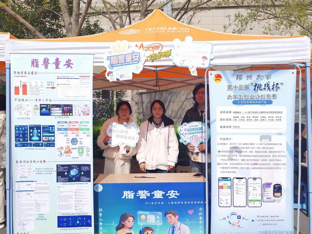 本次校赛路演现场,“脂警童安”团队锐意进取、崭露头角。该团队以详实的数据支撑与严谨的逻辑论证,充分展示医工交叉融合与跨学科协作的创新成果。该项目构建“政策-硬件-平台”三维一体生态体系,依托智能手环实现心率、血氧及活动量的精准监测,数据误差率低于5%,结合院校体测数据与饮食信息,通过人工智能生成个性化运动与营养处方,有效破解儿童肥胖“干预难、管理难、落实难”的行业痛点。此项目获郑州大学第三附属医院专家团队专业指导,紧扣国家卫健委“体重管理年”政策导向,致力于填补儿童肥胖精准化长效管理的市场空白,以科技力量守护儿童健康成长。