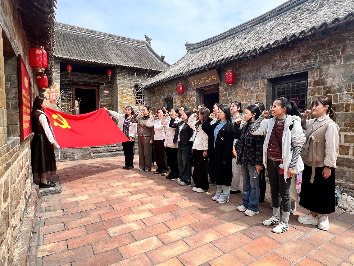 在庄严肃穆的革命旧址前,全体青年医护人员面向鲜红的党旗,举起右拳再次宣誓,声音回荡在古色古香的院落间,既是对革命先辈的致敬,更是对新时代医者使命的庄严承诺。随后,青年们在承载着红色记忆的院落中合影留念,定格青春向党、护佑新生的奋进姿态。