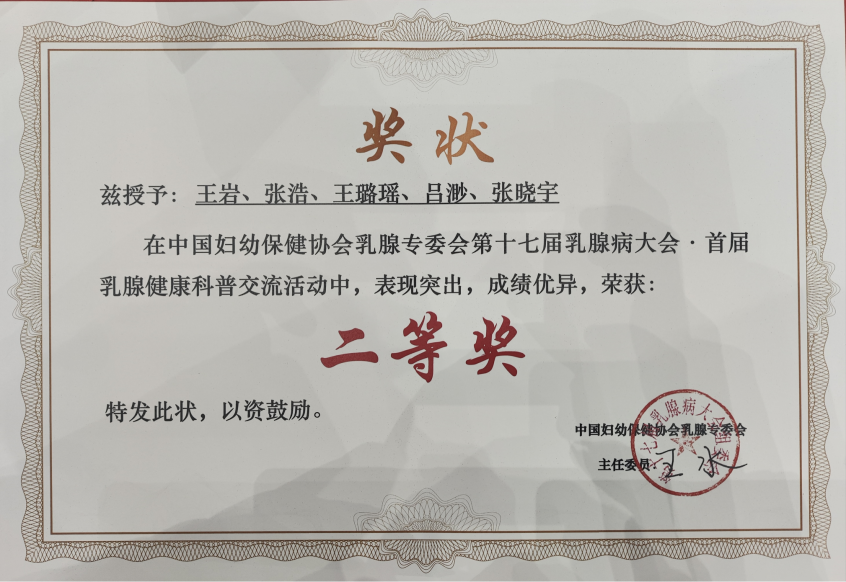 载誉前行,初心不改。乳腺外科始终以守护女性乳腺安康为己任,坚持用群众喜闻乐见的方式,打破医学知识传播的专业壁垒。此次斩获全国二等奖,既是对乳腺外科团队辛勤付出的肯定,更是对科室创新科普工作的激励。