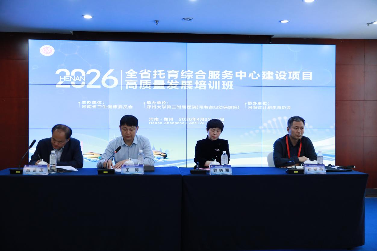 为深入贯彻国家生育支持政策,积极破解托育服务发展瓶颈,强化公办普惠托育服务供给,加快构建“1+n”普惠托育服务体系,推动托育综合服务中心高质量发展,2026年4月23日—24日,由河南省卫健委主办、郑州大学第三附属医院(河南省妇幼保健院)承办、河南省计生协协办的全省托育综合服务中心建设项目高质量发展培训班在郑州顺利举办。开班仪式由河南省计生协秘书长高富国主持。学术讲座由郑州大学第三附属医院副院长郭晓丽及托育服务中心主任吴金凤主持。来自全省各地市卫健委、计生协、托育综合服务中心的托育工作代表齐聚一堂,共话托育发展新思路。