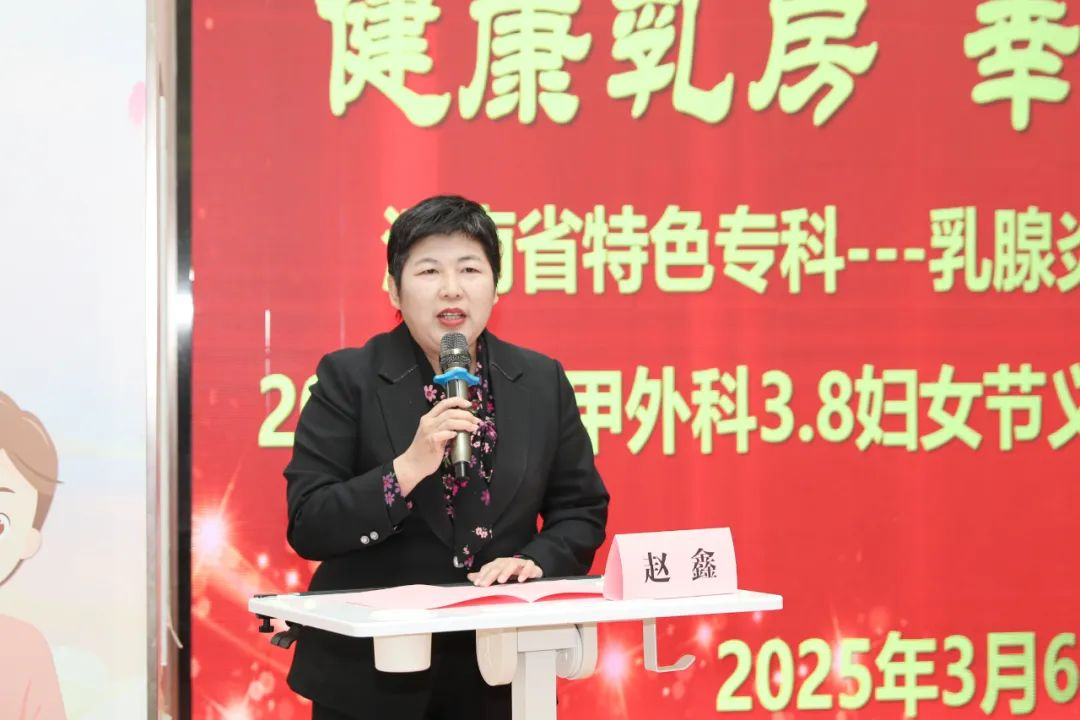 活动伊始,赵鑫为揭牌仪式致辞,她指出,乳腺炎症特色专科揭牌是郑大三附院深化专科建设、服务妇幼健康的重要里程碑。医院乳腺专科不断发展壮大,凭借先进的医疗技术和优质的医疗服务,成为全省妇女乳腺病诊治的坚实后盾。医院组建了技术精湛的医疗团队,致力于为患者提供从预防、诊断到治疗、康复的全链条、个性化服务。站在新起点,我们将聚焦精准诊疗、科研创新、人文关怀,持续推动专科高质量发展。郑大三附院乳腺外科将持续推进亚专业精细化发展,未来,随着乳腺炎专病门诊的开设,医院将进一步优化诊疗流程,提高医疗服务质量,为广大乳腺疾病患者提供更加优质、高效、便捷的医疗服务。